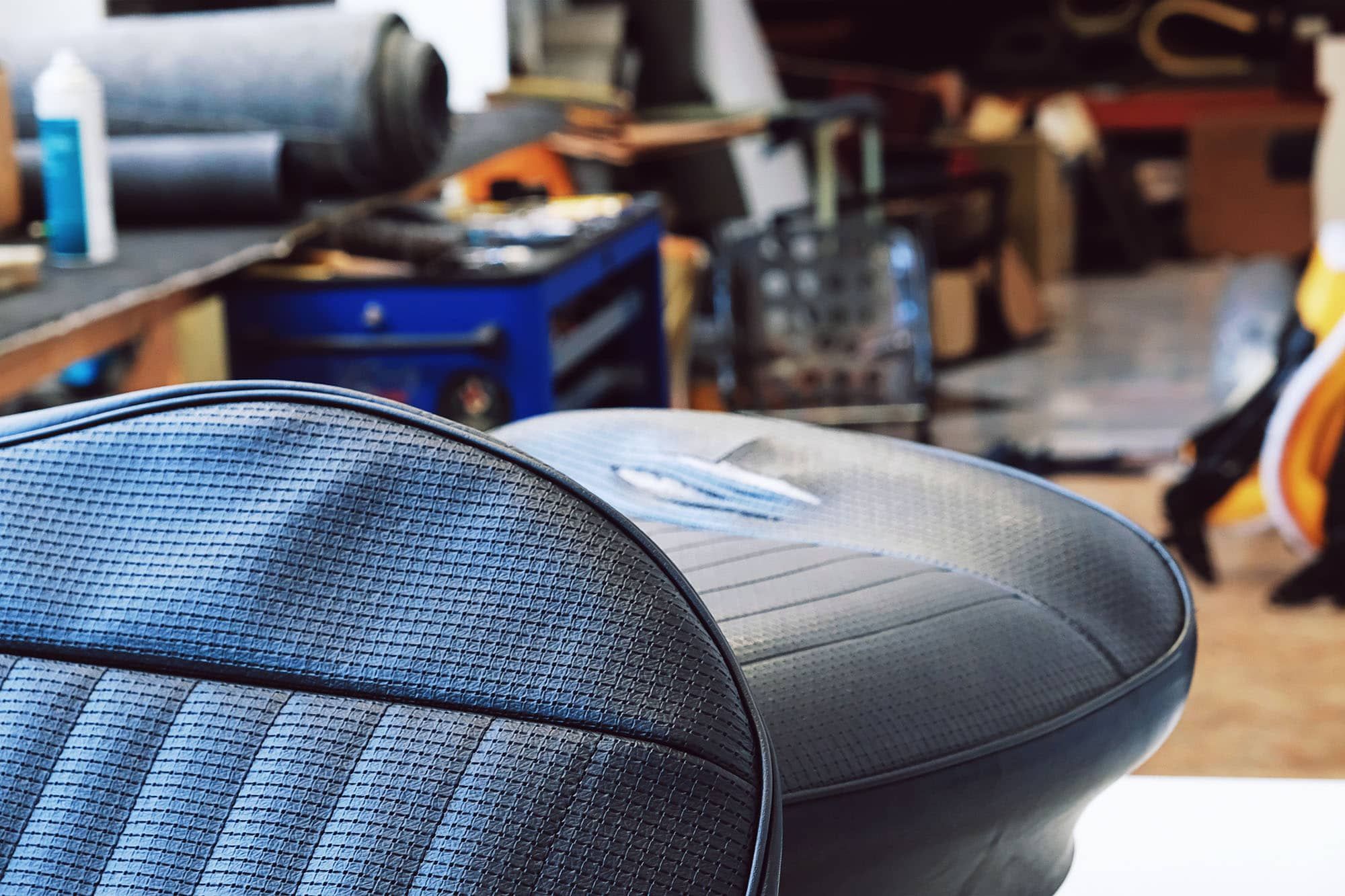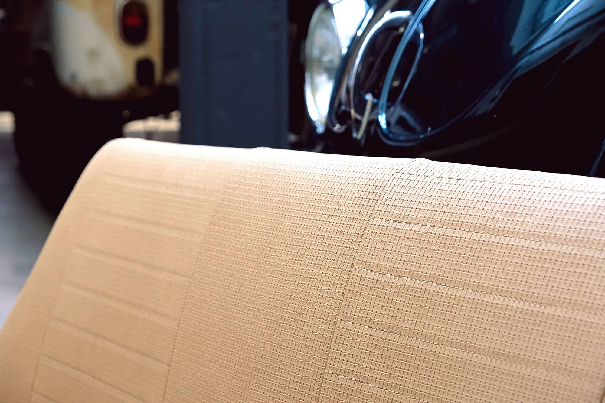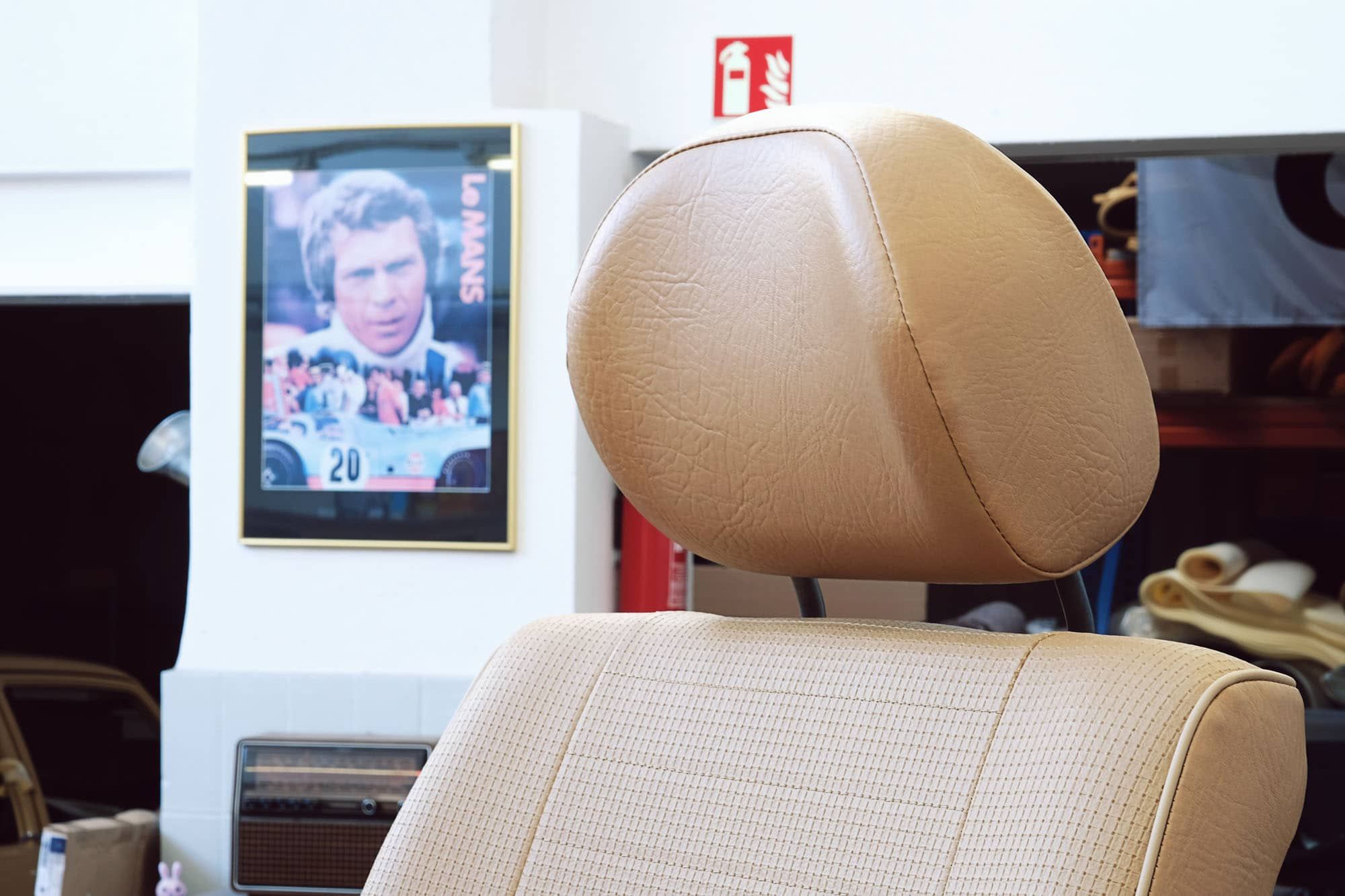 Alle Bezüge werden in unserer Manufaktur in Handarbeit mit hochwertigem Kunstleder mit äußerster Präzision passgenau hergestellt.